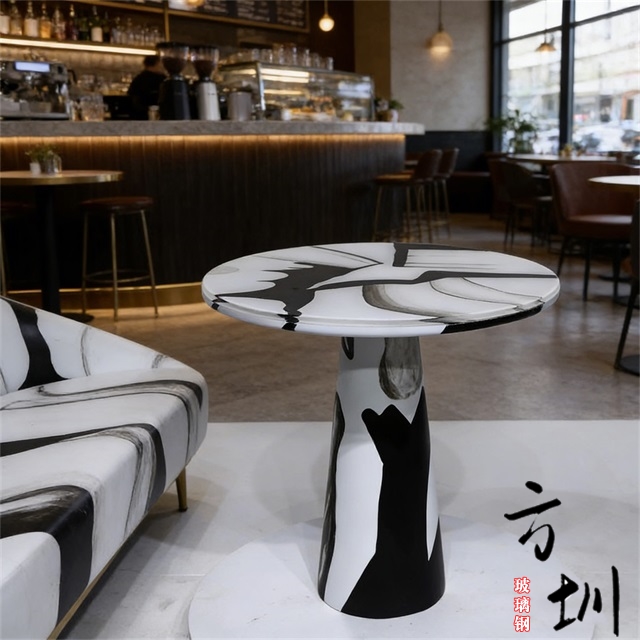 玻璃钢仿大理石纹路茶几桌子家具即纤维强化塑料,一般指用玻璃纤维增强不饱和聚酯、环氧树脂与酚醛树脂基体。以玻璃纤维或其制品作增强材料的增强塑料,称谓为玻璃纤维增强塑料,或称为玻璃钢,不同于钢化玻璃;采使用的树脂品种不同,因此有聚酯玻璃钢、环氧玻璃钢、酚醛玻璃钢之别。质轻而硬,不导电,性能稳定,机械强度高,回收利用少,耐腐蚀。可以代替钢材制造机器零件和汽车、船舶外壳等。