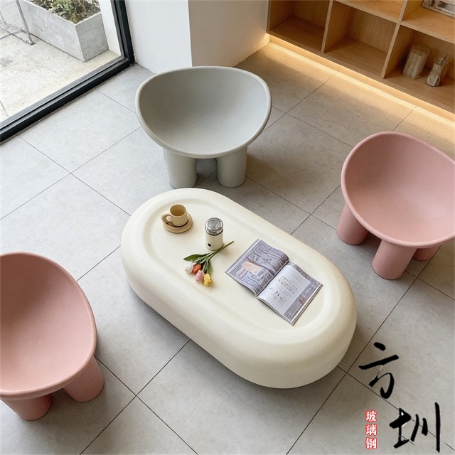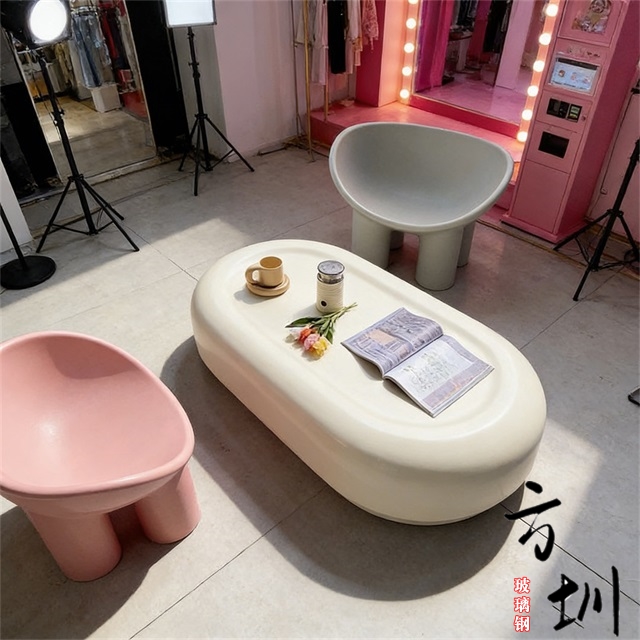 玻璃钢肥皂盒造型茶几家具即纤维强化塑料,一般指用玻璃纤维增强不饱和聚酯、环氧树脂与酚醛树脂基体。以玻璃纤维或其制品作增强材料的增强塑料,称谓为玻璃纤维增强塑料,或称为玻璃钢,不同于钢化玻璃;采使用的树脂品种不同,因此有聚酯玻璃钢、环氧玻璃钢、酚醛玻璃钢之别。质轻而硬,不导电,性能稳定,机械强度高,回收利用少,耐腐蚀。可以代替钢材制造机器零件和汽车、船舶外壳等。